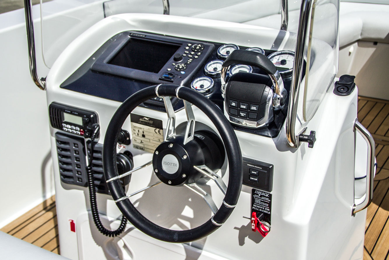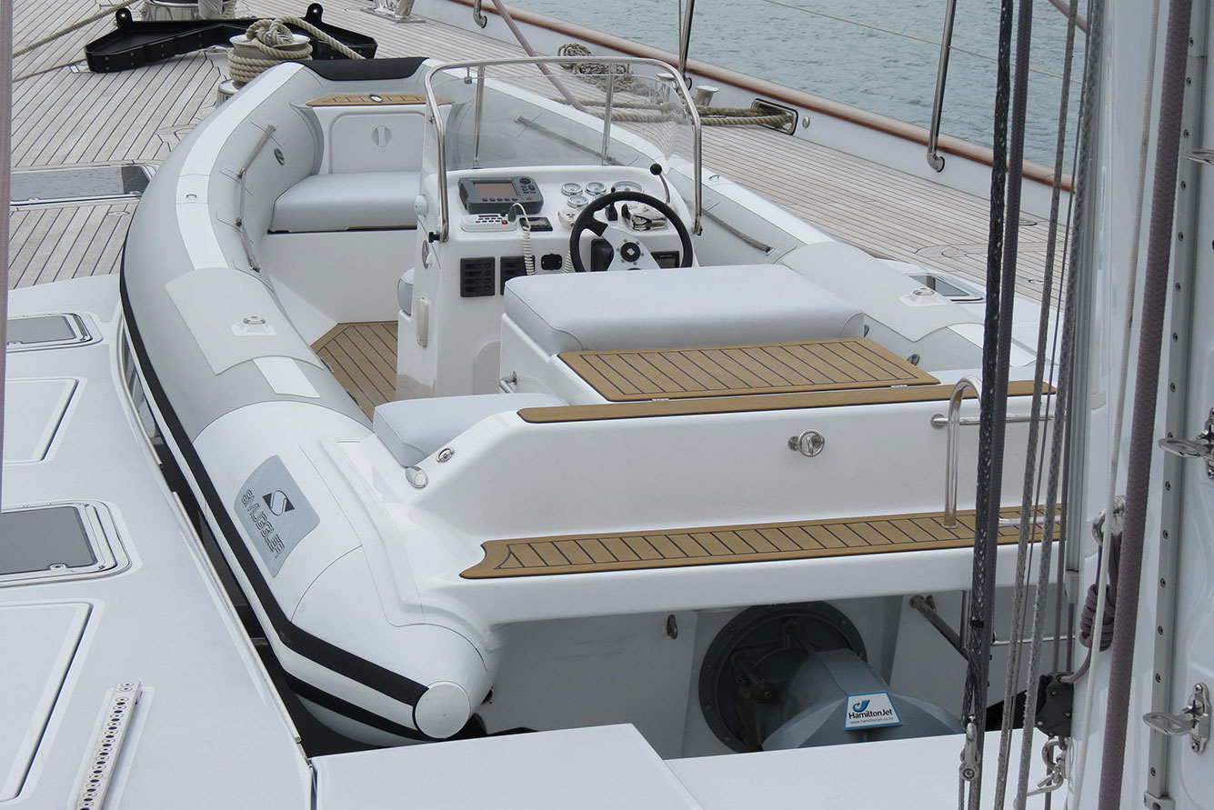 The Smuggler Strata 630 Inboard / Outboard Tender is designed with the discerning Superyacht owner in mind. These machines are made to perform. They have a 23 degree deep vee hull so the ride is comfortable and safe, no matter what the conditions, designed to keep your guests dry. All finishing and fittings are top quality, with the added bonus of a custom finish to match your colour scheme. Choose from folding bow steps, forward guest canopy, inboard, outboard, stern or jet drive, the 630 RIB Tender will exceed your expectations.