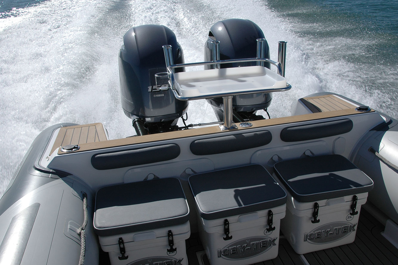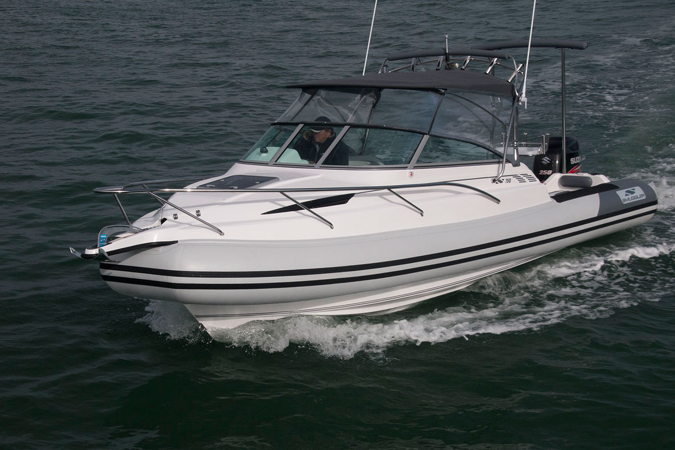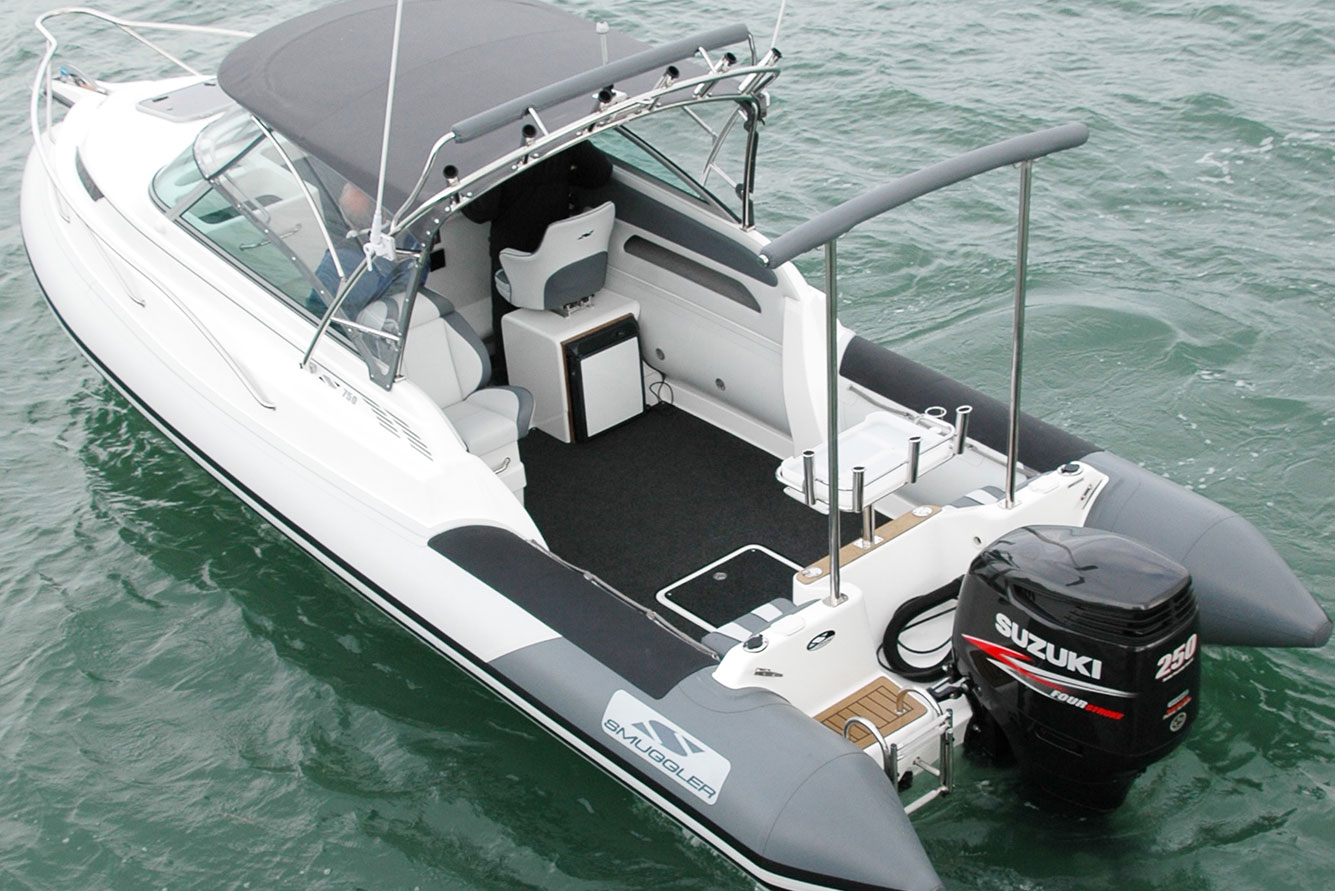 The Smuggler Strata 820 sets a new standard in cabin RIBs. This is a machine designed to perform. It has the proven performance of the Smuggler 27 degree deep vee hull – so you can go hard and fast, no matter what the conditions. Whether you are into fishing, diving, playing, or charter, the Strata 820 will exceed your expectations. Overnighting is a great option on this boat, and having the protection of a full cabin gives you confidence of a warm, dry, safe ride. With options for full hardtop or sport bimini tops, single or twin engines, you can build the boat you want.