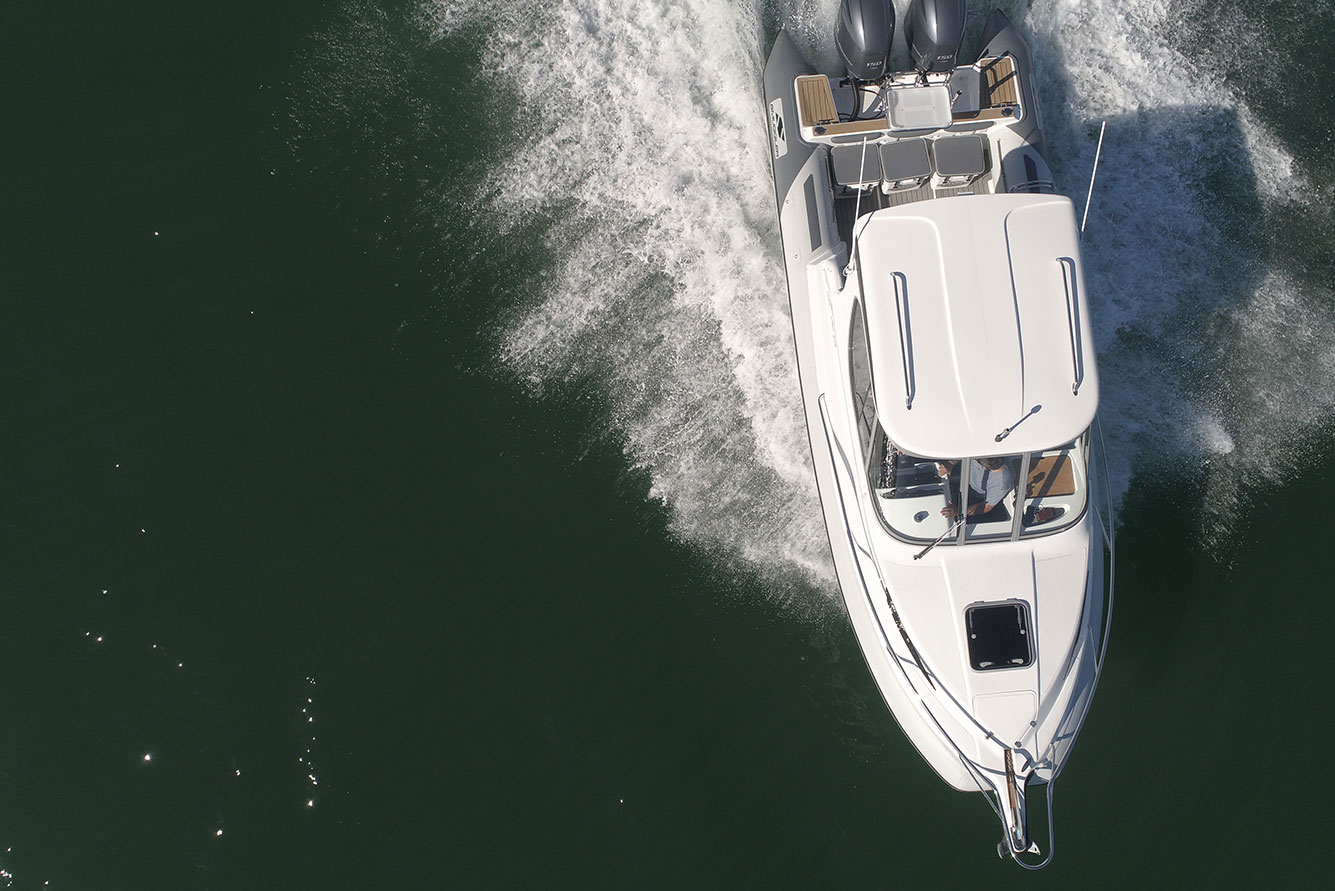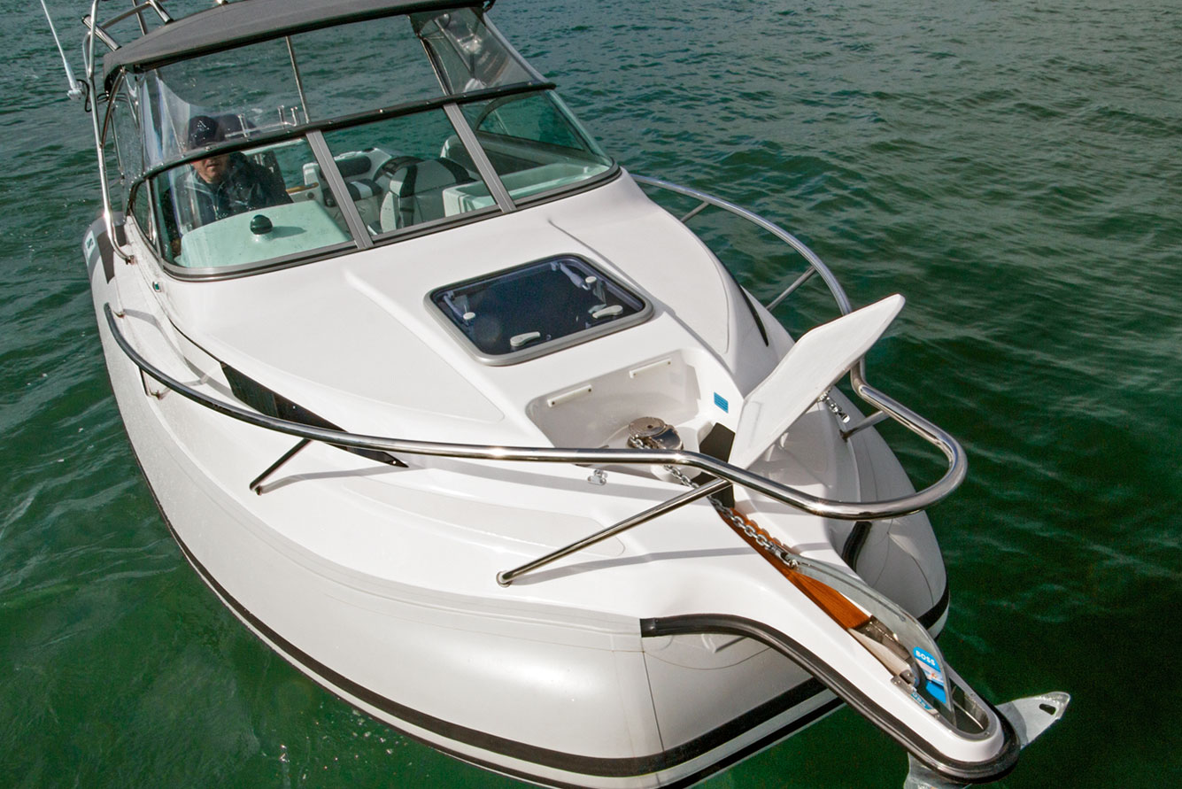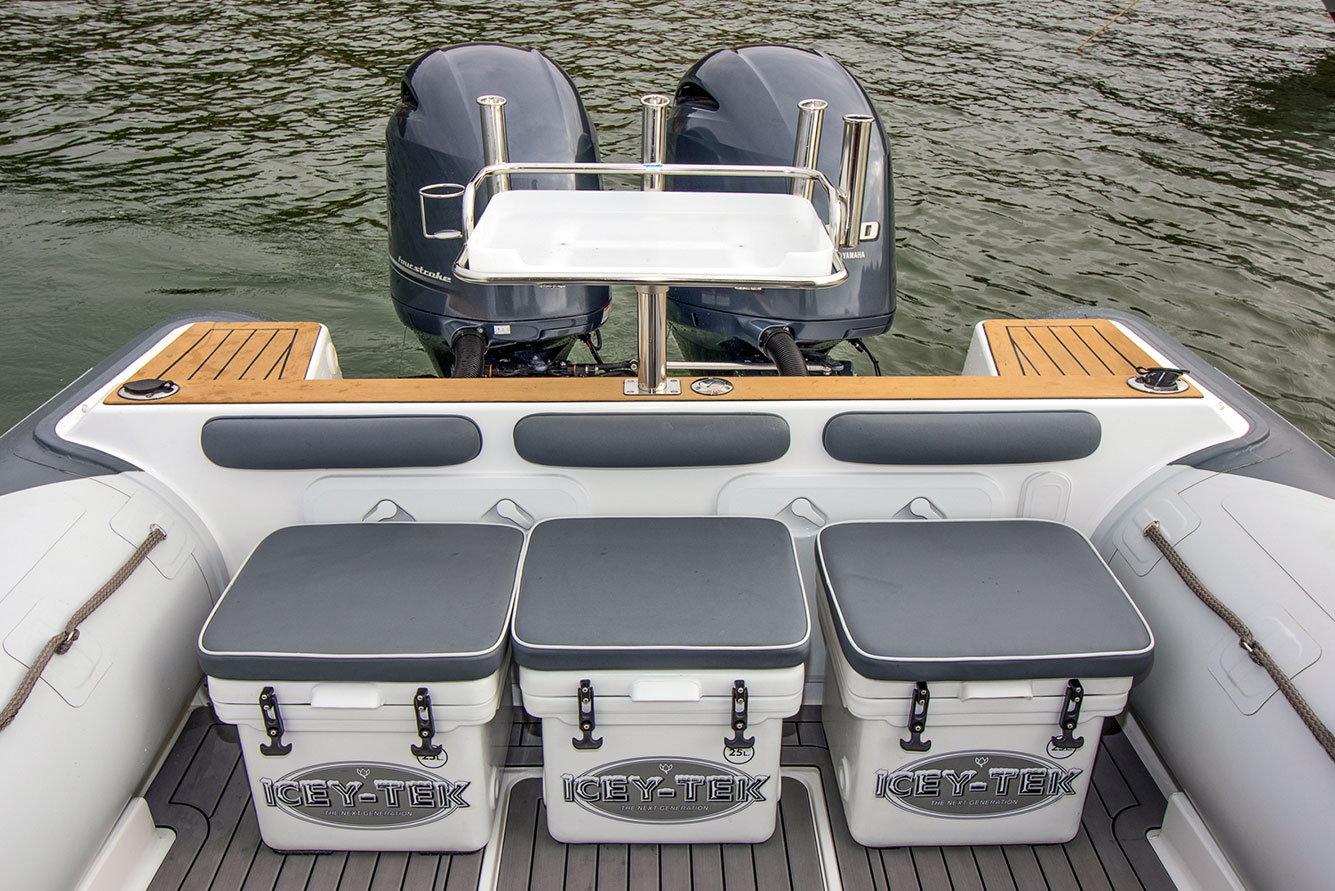 The Smuggler Strata 820 sets a new standard in cabin RIBs. This is a machine designed to perform. It has the proven performance of the Smuggler 27 degree deep vee hull – so you can go hard and fast, no matter what the conditions. Whether you are into fishing, diving, playing, or charter, the Strata 820 will exceed your expectations. Overnighting is a great option on this boat, and having the protection of a full cabin gives you confidence of a warm, dry, safe ride. With options for full hardtop or sport bimini tops, single or twin engines, you can build the boat you want.