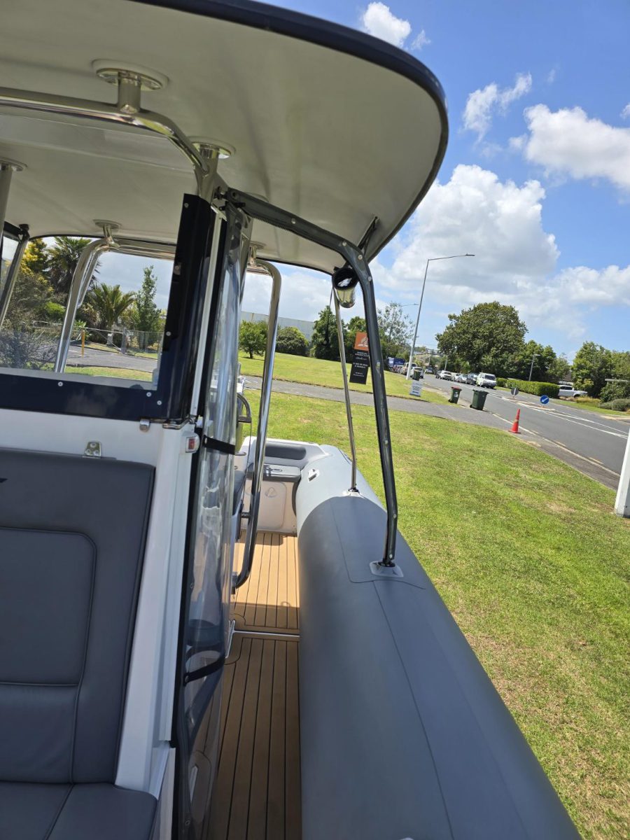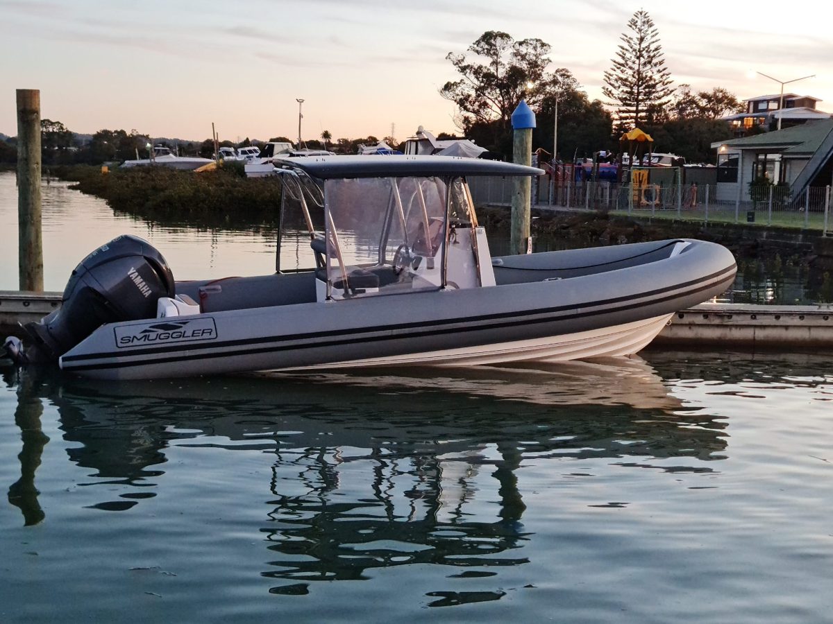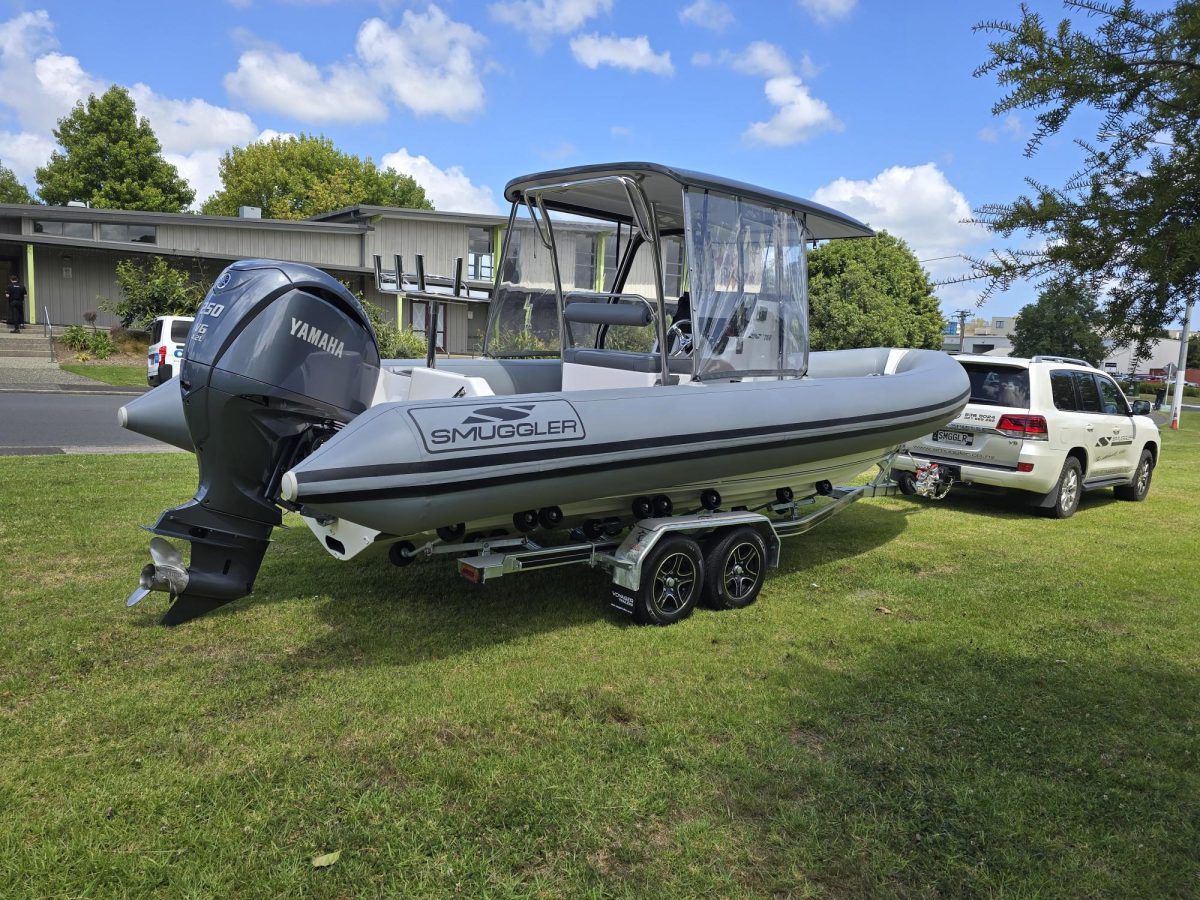 Smuggler 750 CC 2022 Fibreglass hull and liner Gen 2 console with windscreen Large forward seat on console, stowage under Hypalon tubes, handles, double wear patches Built in 300 litre fuel tank (approx.)S/S fuel filler Raised forward seat and anchor locker Outboard well with 2x moulded aft seats upholstered Brass keel strip/ Towing eye Hydraulic steering Auto Bilge pumps x2 / Trim tabs 6-Way switch panels x2 Navigation lights, Anchor light Console light, cockpit lights Batteries x2, boxed, switch gear Drink holders / Rod holders x2 Boarding ladder on transom Rod holders x2 Baitboard and pole Through bow anchor with SS anchor Double helmseat with reversible backrest Gen 2 console XL hard top with SS supports Folding hardtop / Removable windscreen