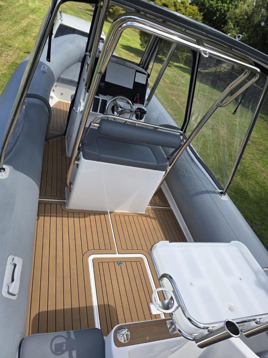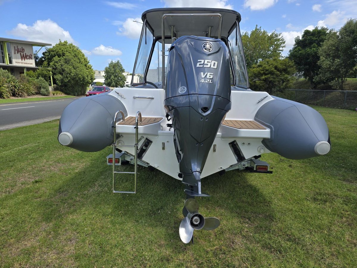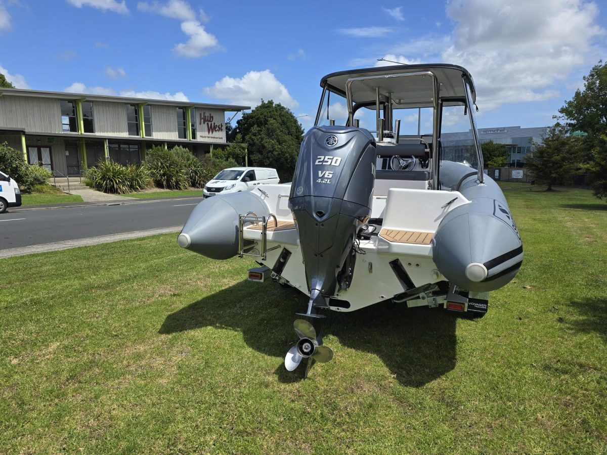Smuggler 750 CC 2022 Fibreglass hull and liner Gen 2 console with windscreen Large forward seat on console, stowage under Hypalon tubes, handles, double wear patches Built in 300 litre fuel tank (approx.)S/S fuel filler Raised forward seat and anchor locker Outboard well with 2x moulded aft seats upholstered Brass keel strip/ Towing eye Hydraulic steering Auto Bilge pumps x2 / Trim tabs 6-Way switch panels x2 Navigation lights, Anchor light Console light, cockpit lights Batteries x2, boxed, switch gear Drink holders / Rod holders x2 Boarding ladder on transom Rod holders x2 Baitboard and pole Through bow anchor with SS anchor Double helmseat with reversible backrest Gen 2 console XL hard top with SS supports Folding hardtop / Removable windscreen