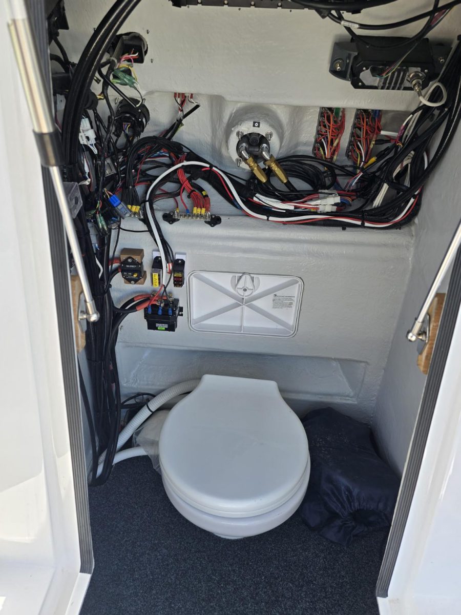 Side clears with S/S supports on console Extended side clears Simrad NSS12 Touchscreen VHF, aerial / USB Outlet Electric toilet in console U-Dek flooring panels fitted Gussi steering wheel upgrade Lifting eyes fitted Yamaha F250 XCB done 236 hours Trailer – brand new Voyager trailer with SS brakes